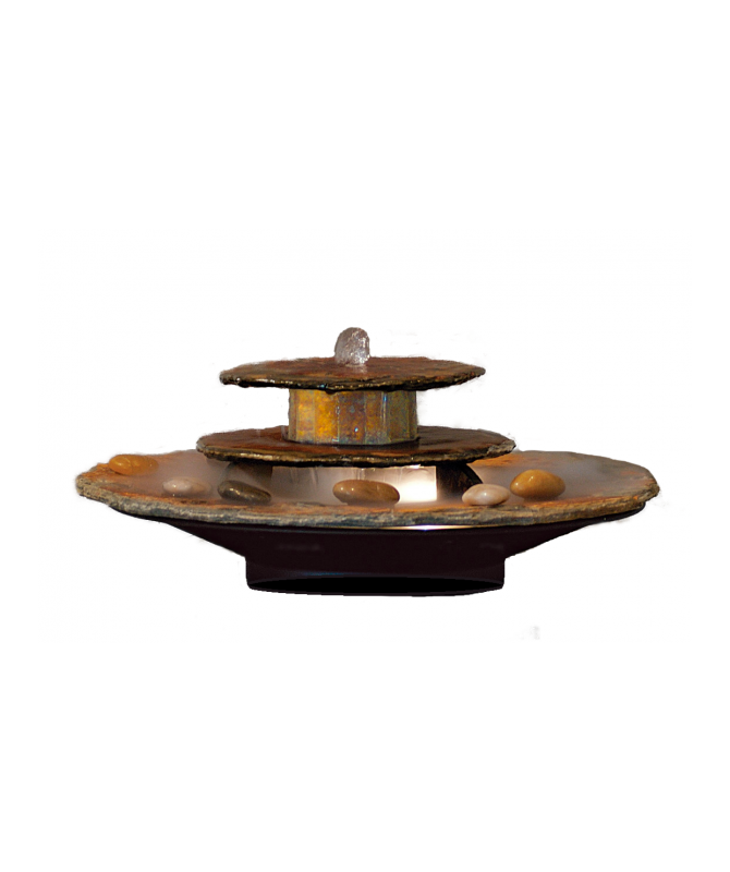 Originální pokojová Fontána Kasumi z přírodního kamene z břidlice s vynikající úpravou je okouzlující bytový nebo kancelářský doplněk, který vám přinese klid a harmonii do duše. Voda stéká po stěně z kamene, který je nasvícen. Její harmonický tvar vytváří oázu klidu a meditace v této rychlých a hektických časech .. Fontány jsou výborné pro zlepšení, ionizaci a zvlhčování vzduchu a také pro lapání prachu. Zvyšování vlhkosti vzduchu zabraňuje vysušování pokožky a sliznice.